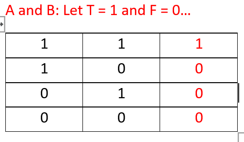 How does one define the usual logical operators (think back to your first course in symbolic logic)?…by way of tables.